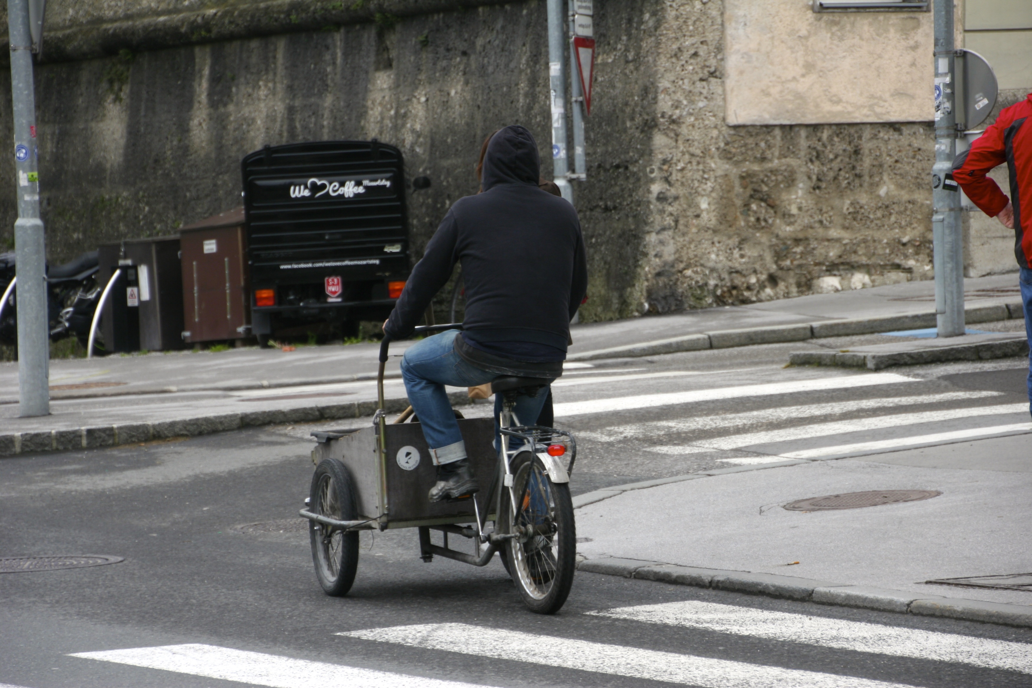 In a few minutes the lead pair moved out, away from the hotel and up the street, followed in a moment by the rest of the wagons, four or five altogether. Following the last wagon was a man on a modified bicycle (a reverse tricycle, if you will) with a big container in the front – as he drove by, directly below, I could see that there was a shovel resting in the container as well as a lot of brown stuff… instantly recognizable as horse poop.