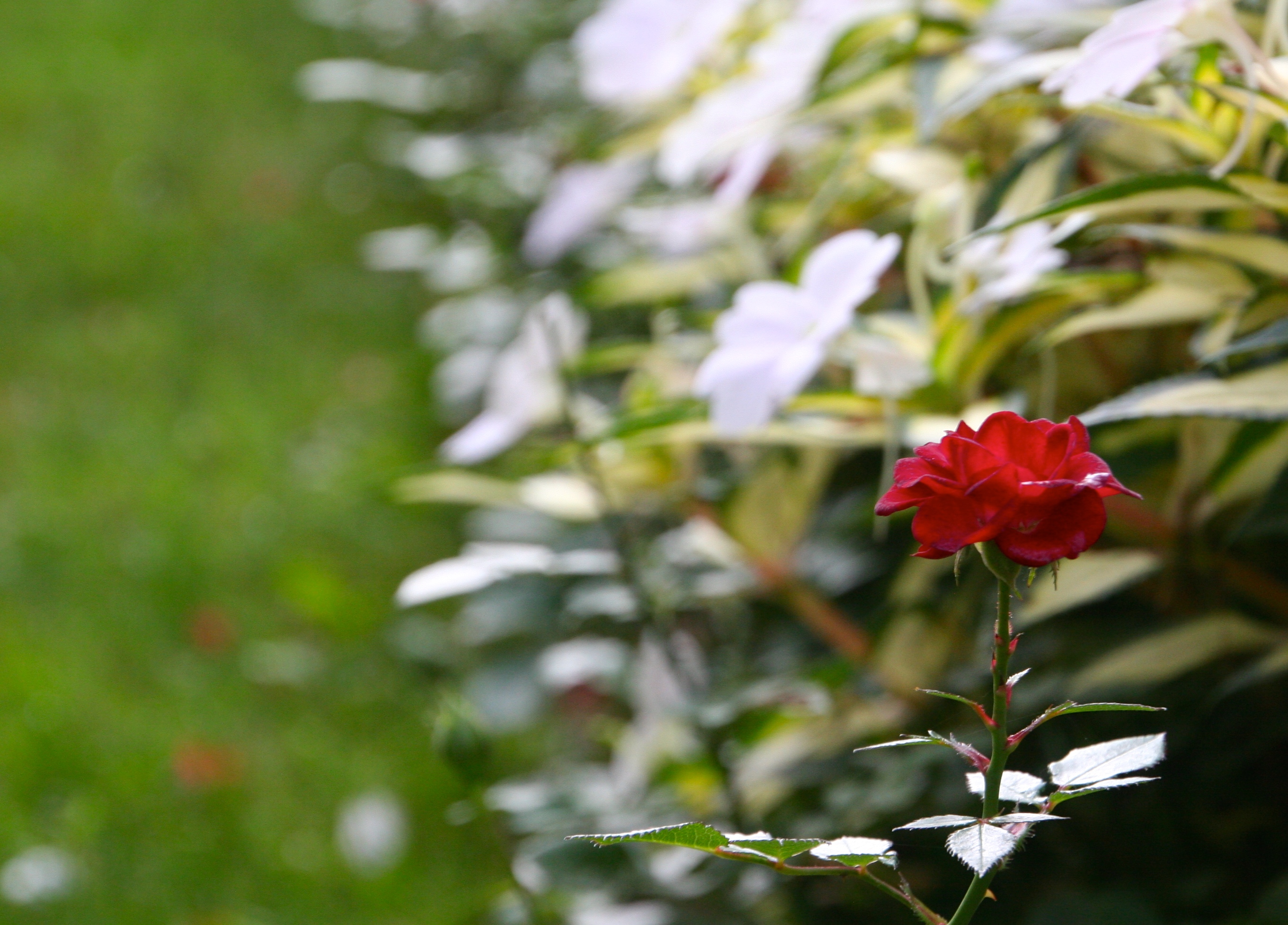 Something about this shot captures my attention – the lone red rose standing tall and solitary among the white flowers