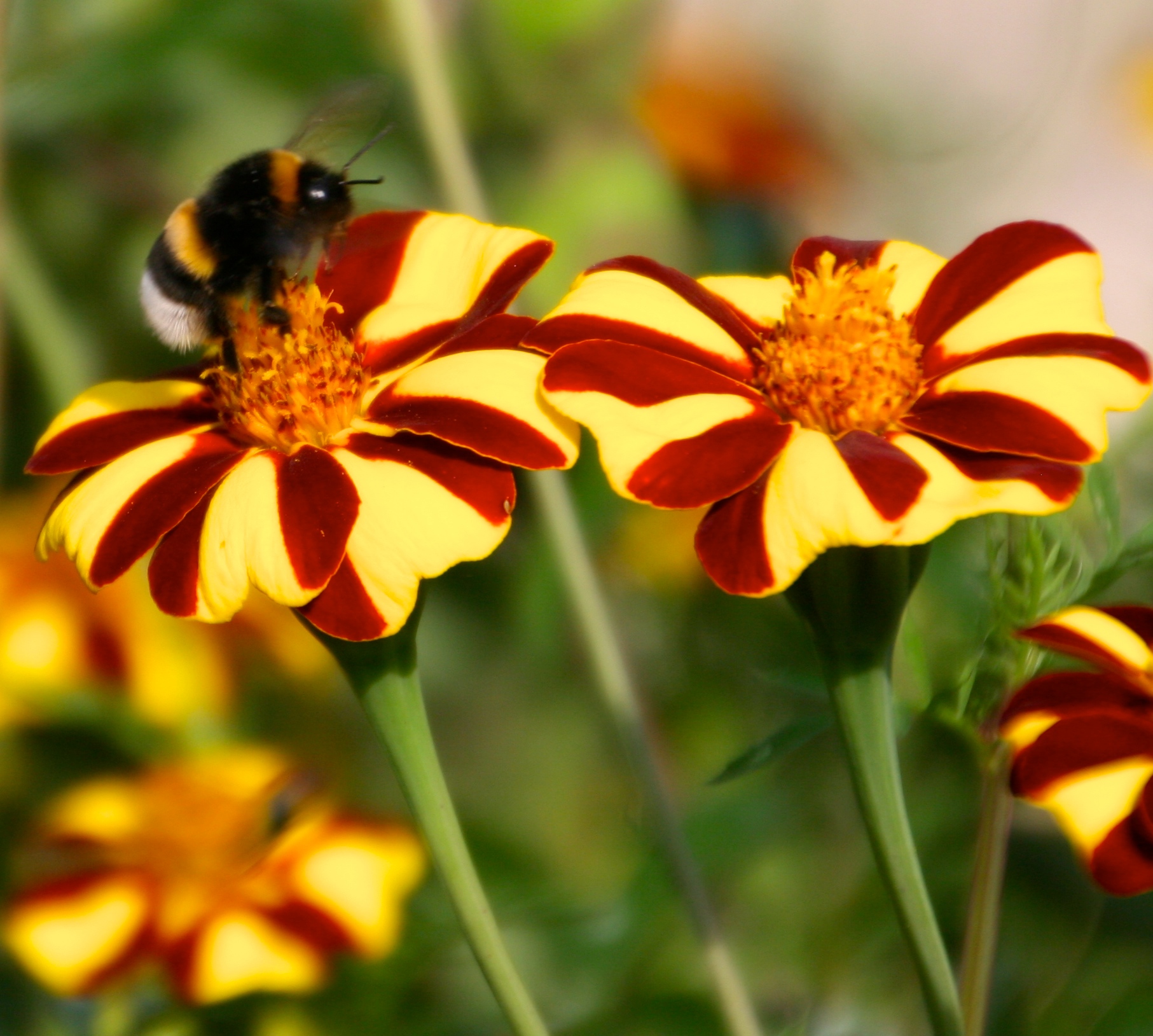 Capturing bees extracting nectar and pollen from flowers is another favorite shot, made all the more exciting because of the pure luck of seeing it happen when you have a camera in hand. Actually getting the shot is another matter all together. I have several “misses” besides these two relatively decent (though slightly blurred) shots. This bumblebee was huge!