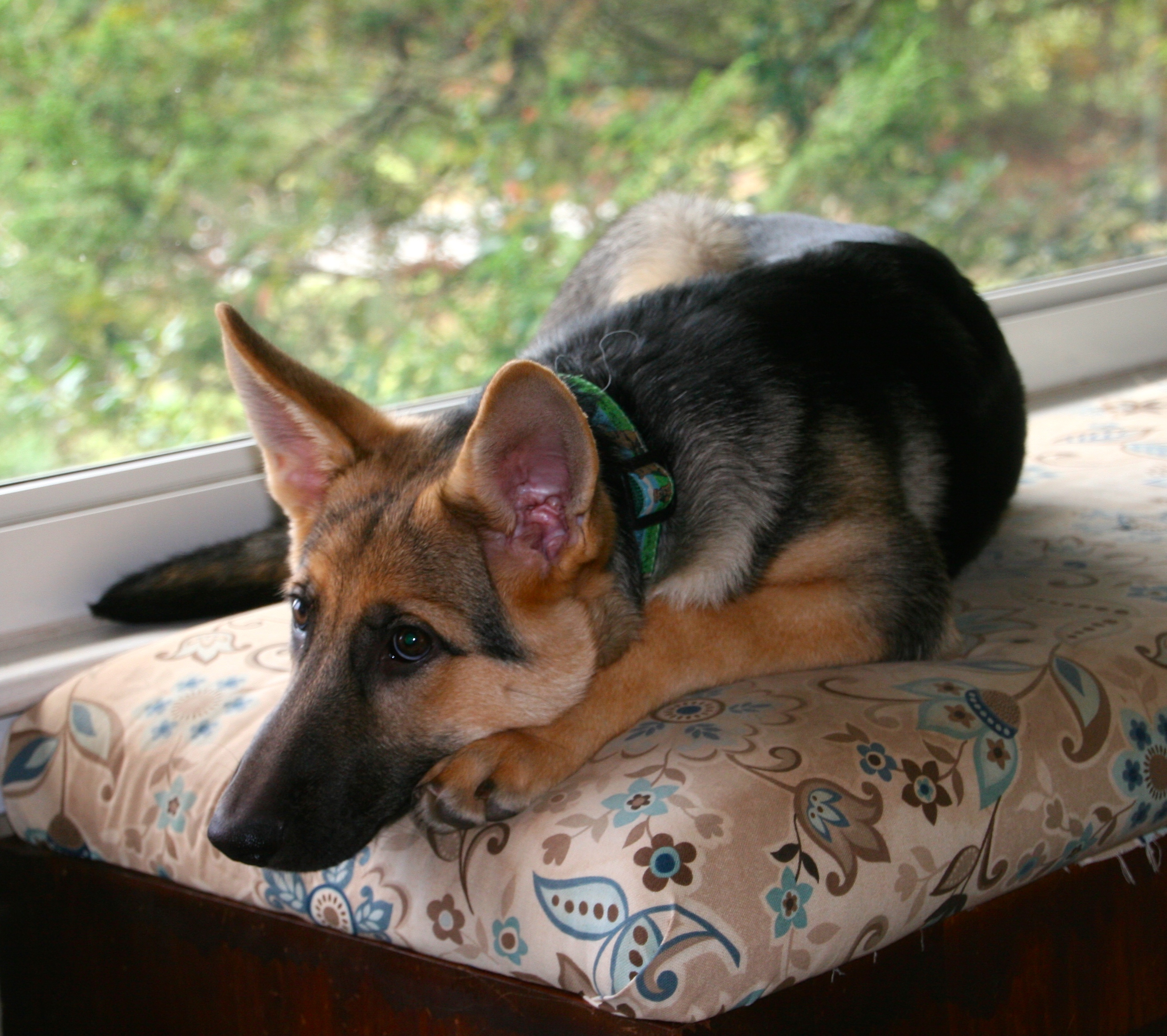 I spent a lovely day on Saturday (it already seems like a lifetime ago) with my friend and her new Seeing Eye puppy-in-training, Dottie, an adorable and energetic German Shepherd. Pictures are included below – the last one is my favorite.