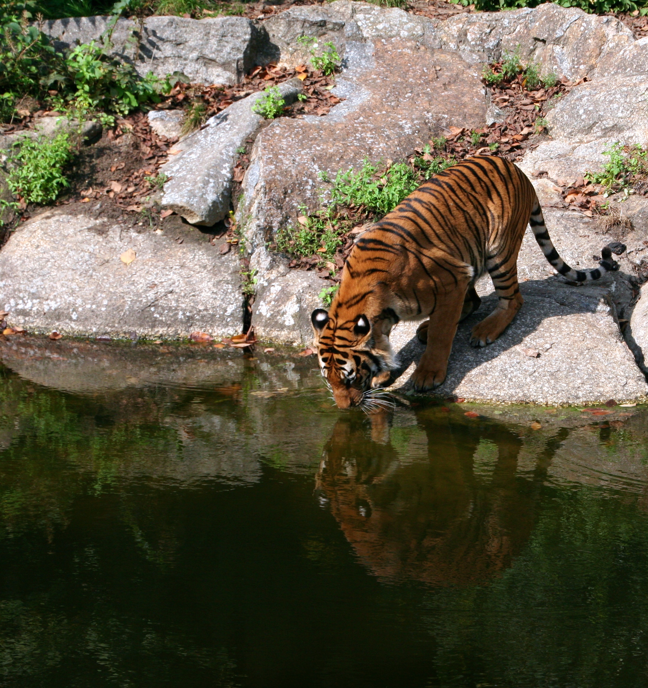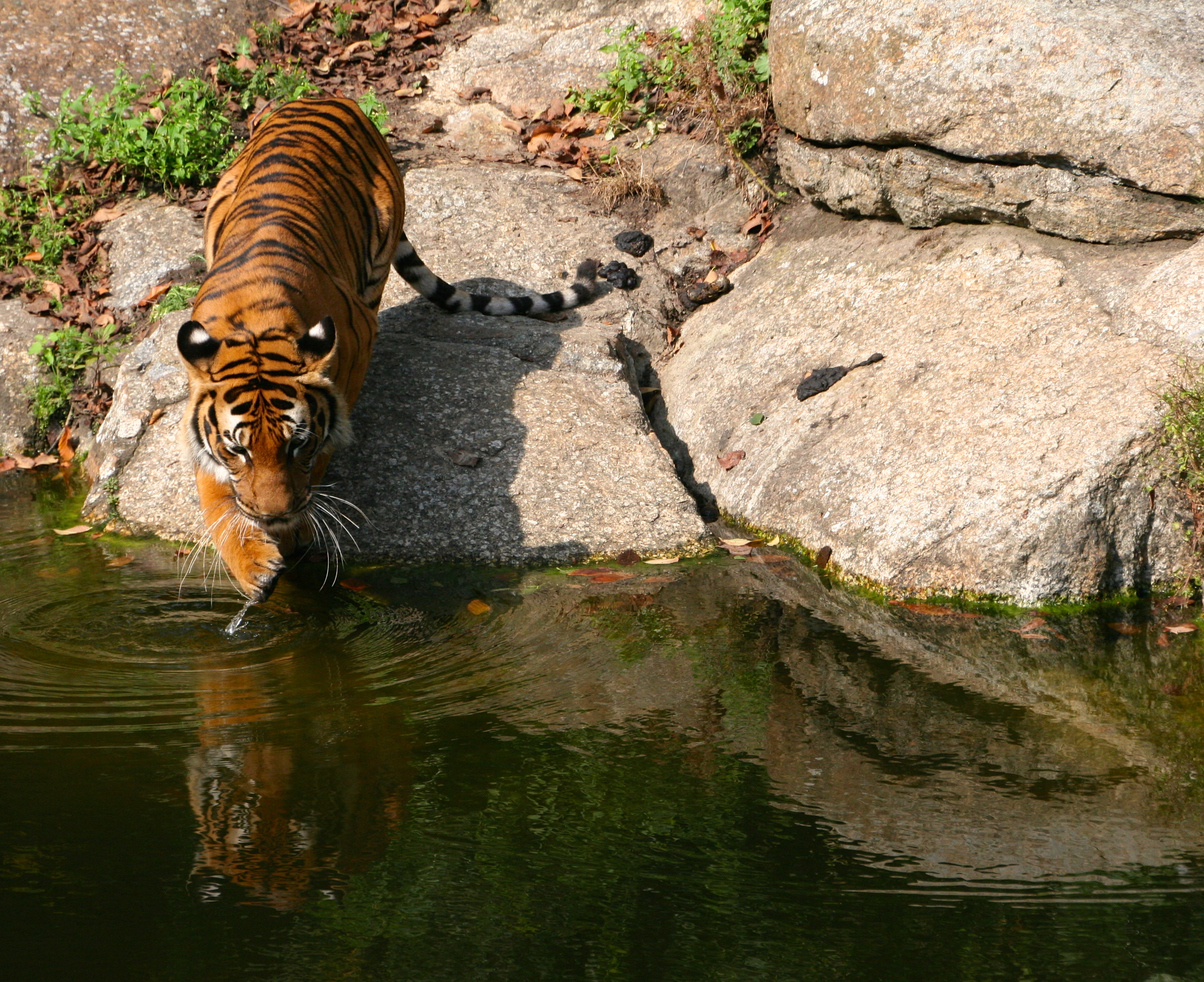 I feel like its time for more tiger pictures from the Berlin Zoo. You didn’t think you were done with those, did you? This series was taken close together in time. If you could see them the way I do in iPhoto, you could see them as a slow-motion or stop motion movie. The tiger was splashing his paw in the water, having a grand old time. I know the effect is not the same here, but I hope you enjoy it anyway!