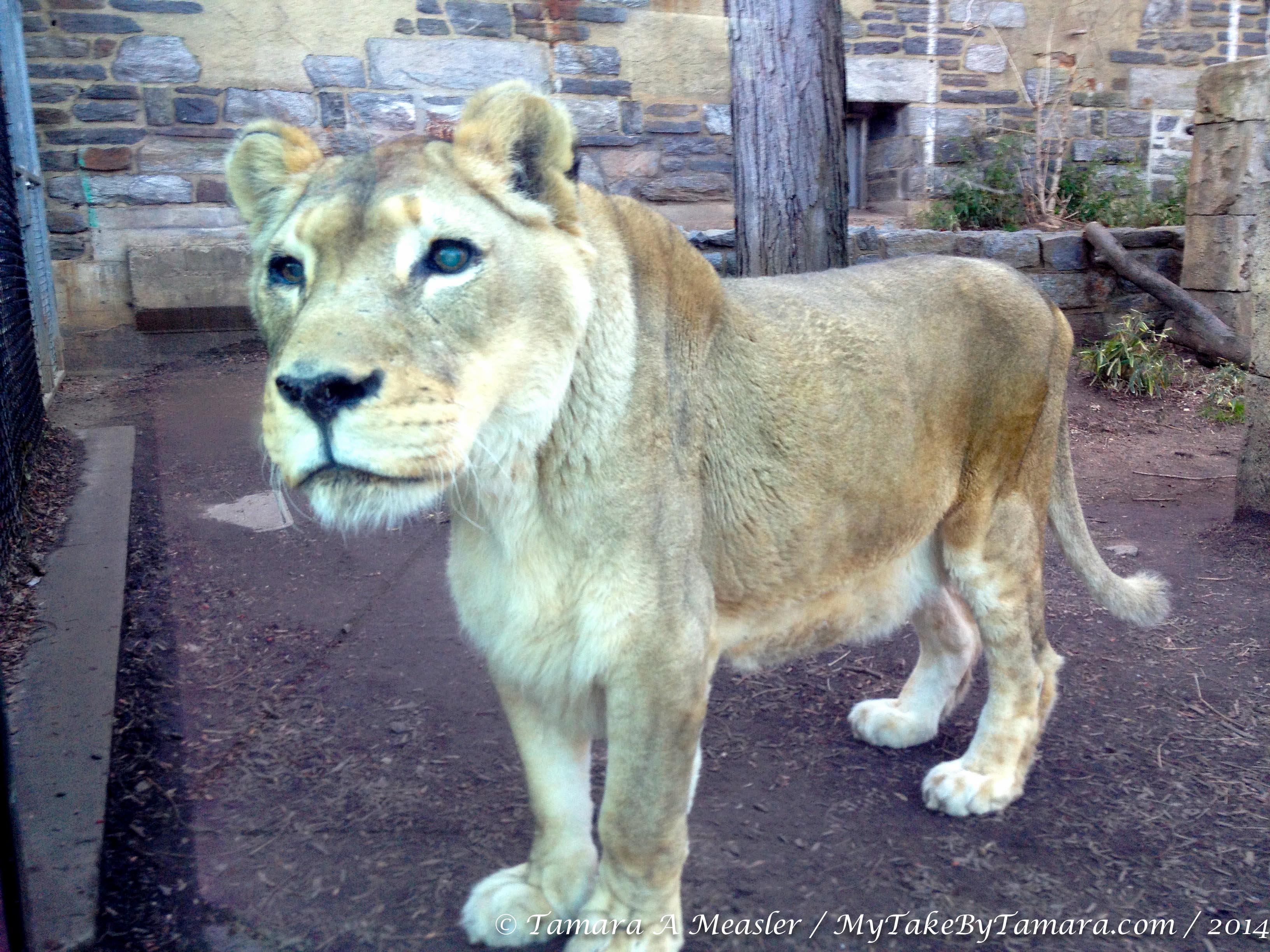This is the sweet older female lion at the zoo. I think I heard a keeper say she was around 20 years old but I can’t swear on it. She makes me a little sad because she’s all alone when lions are known to be such social animals, and it looks like she’s got a bit of an eye problem. But I’m sure the zoo is taking the proper care of her – I trust them like that.
