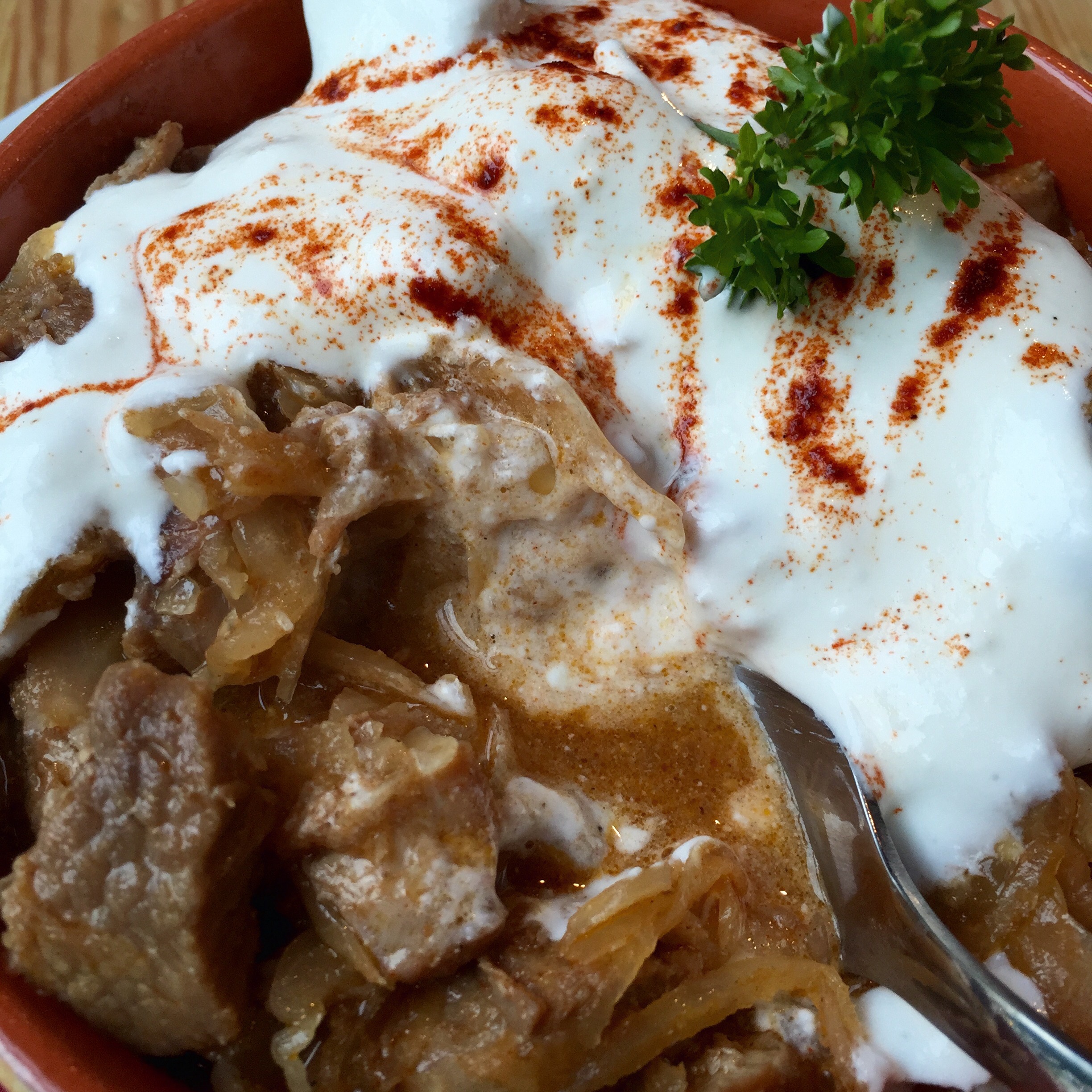 I ordered a Hungarian Sauerkraut Stew. It was totally delicious and the first time in a long time that I’ve had sauerkraut when it wasn’t New Year’s Day, lol.