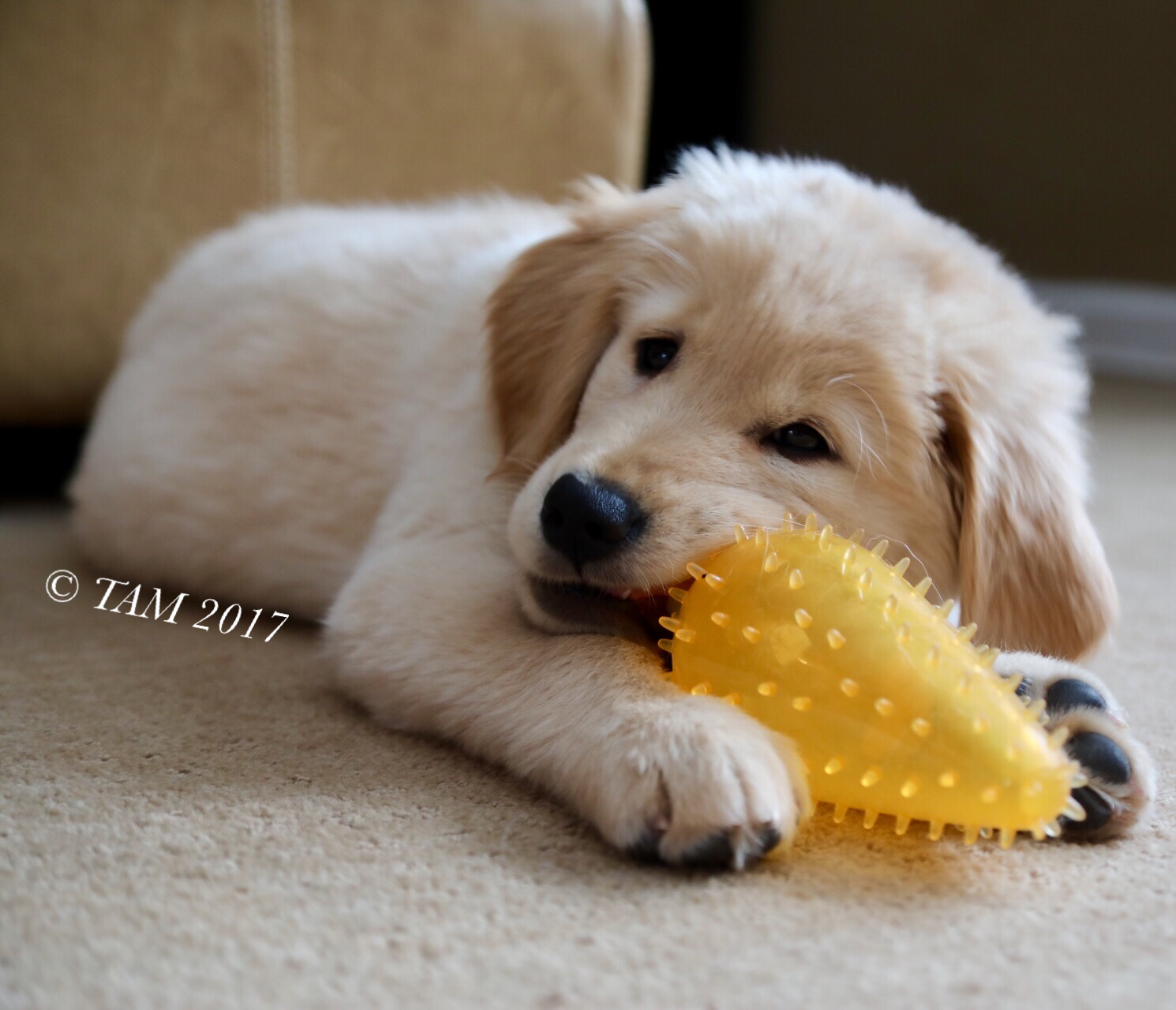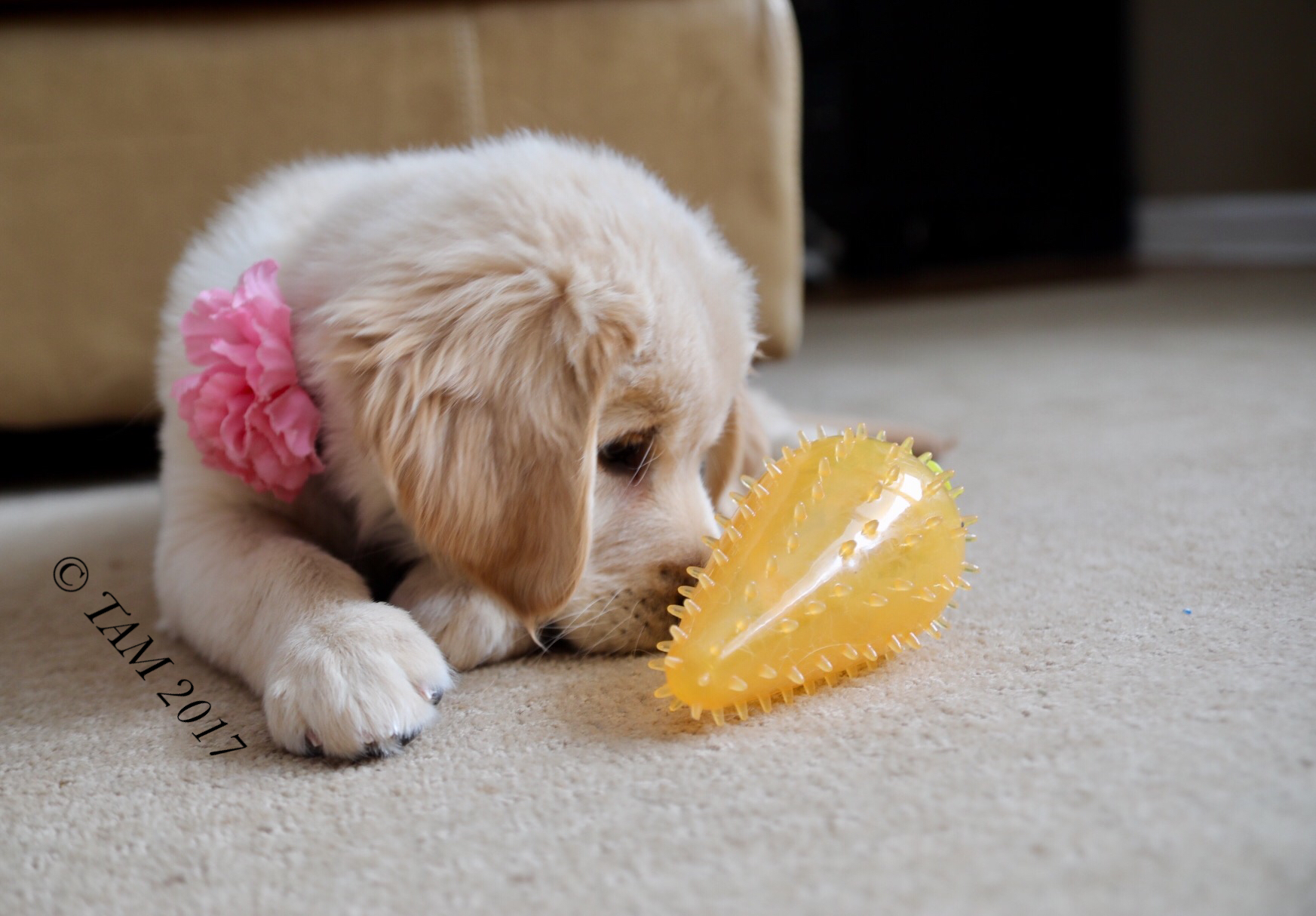 My friend Lisa has another adorable new seeing-eye puppy to train. In a cute series of pictures, here’s Primrose playing with a toy carrot. Enjoy!