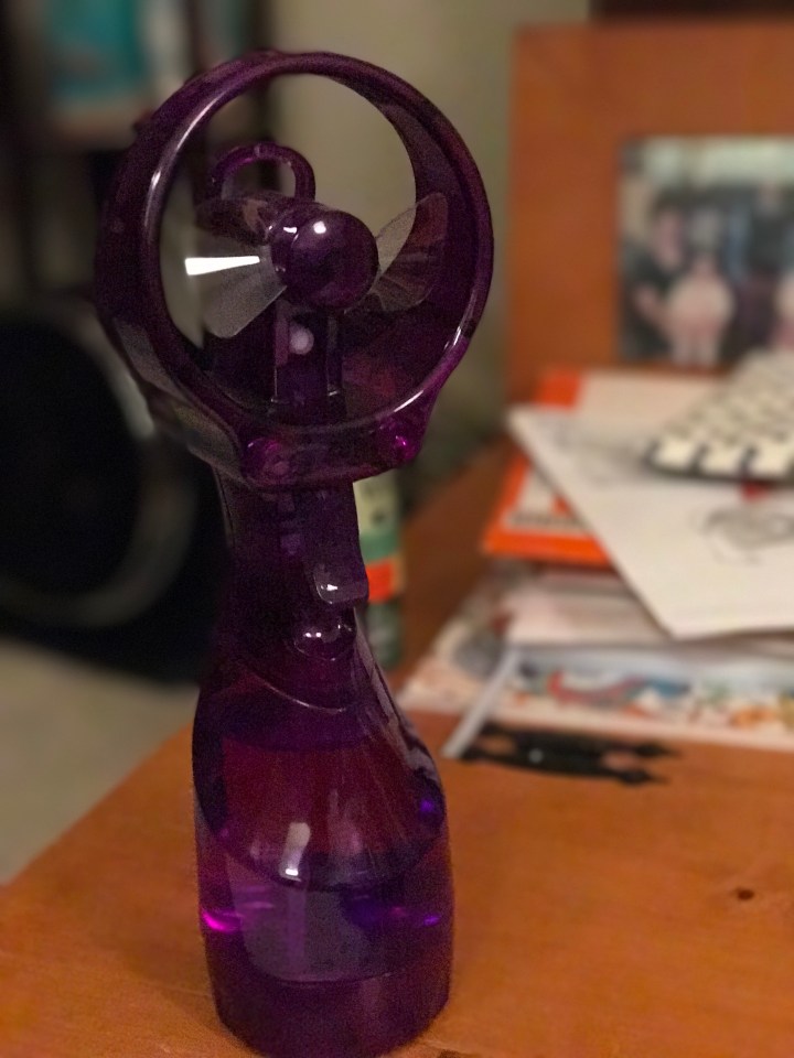 But one thing I brought to the proverbial table on my own initiative…an excellent addition to any hiking routine… is the battery-powered, squirt-bottle fan. It was an impulse purchase on a previous trip to Eddie Bauer, and I have to say it was the BEST PURCHASE EVER! Okay, that may be a slight exaggeration, but it was truly a worthy one and not too expensive, either. Given how hot it was the first few days in Maine, I put that new fan to good use. Lovely! It’s a keeper!