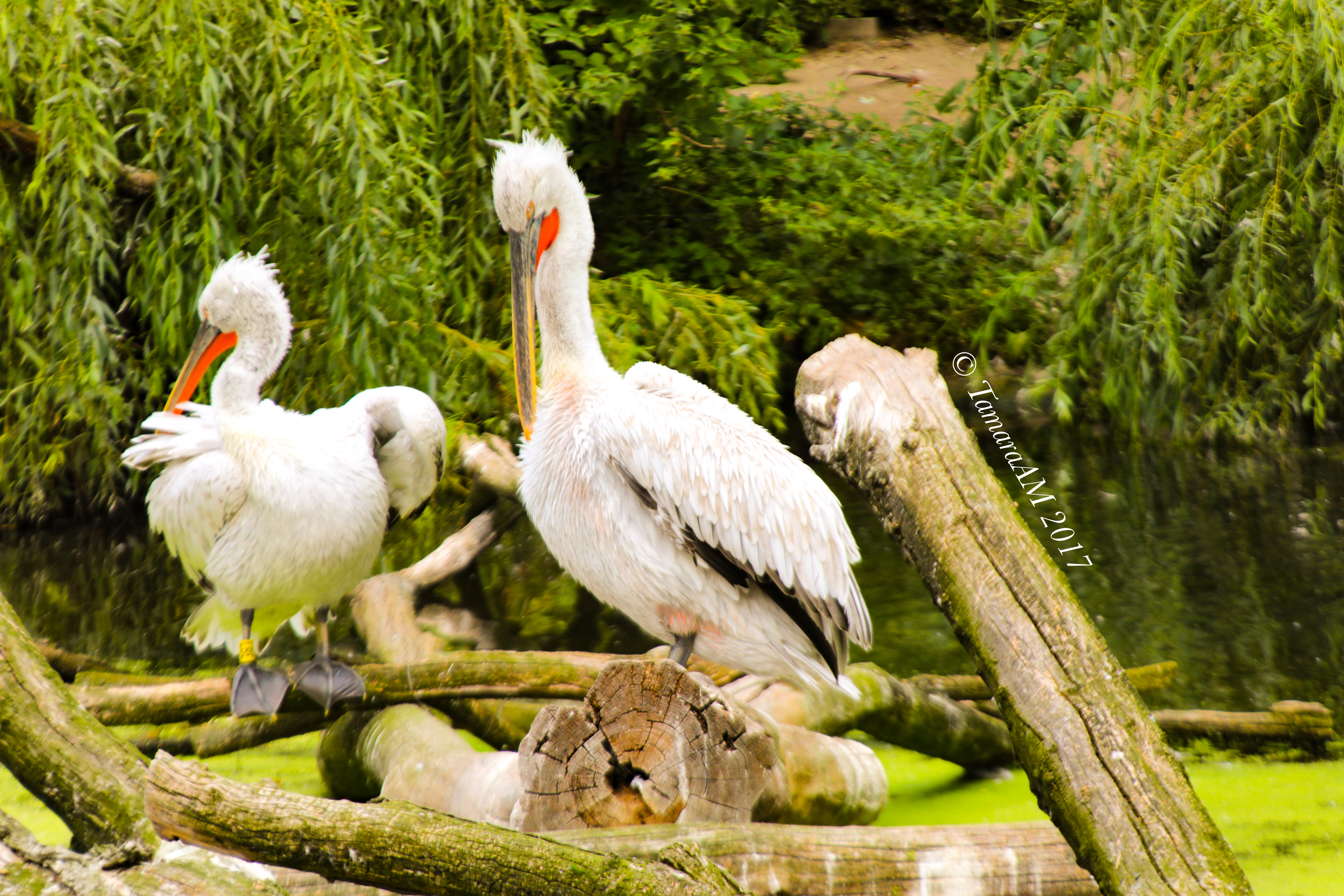 I love how the orange part of these pelican’s beaks just jump right out amidst the white and green.
