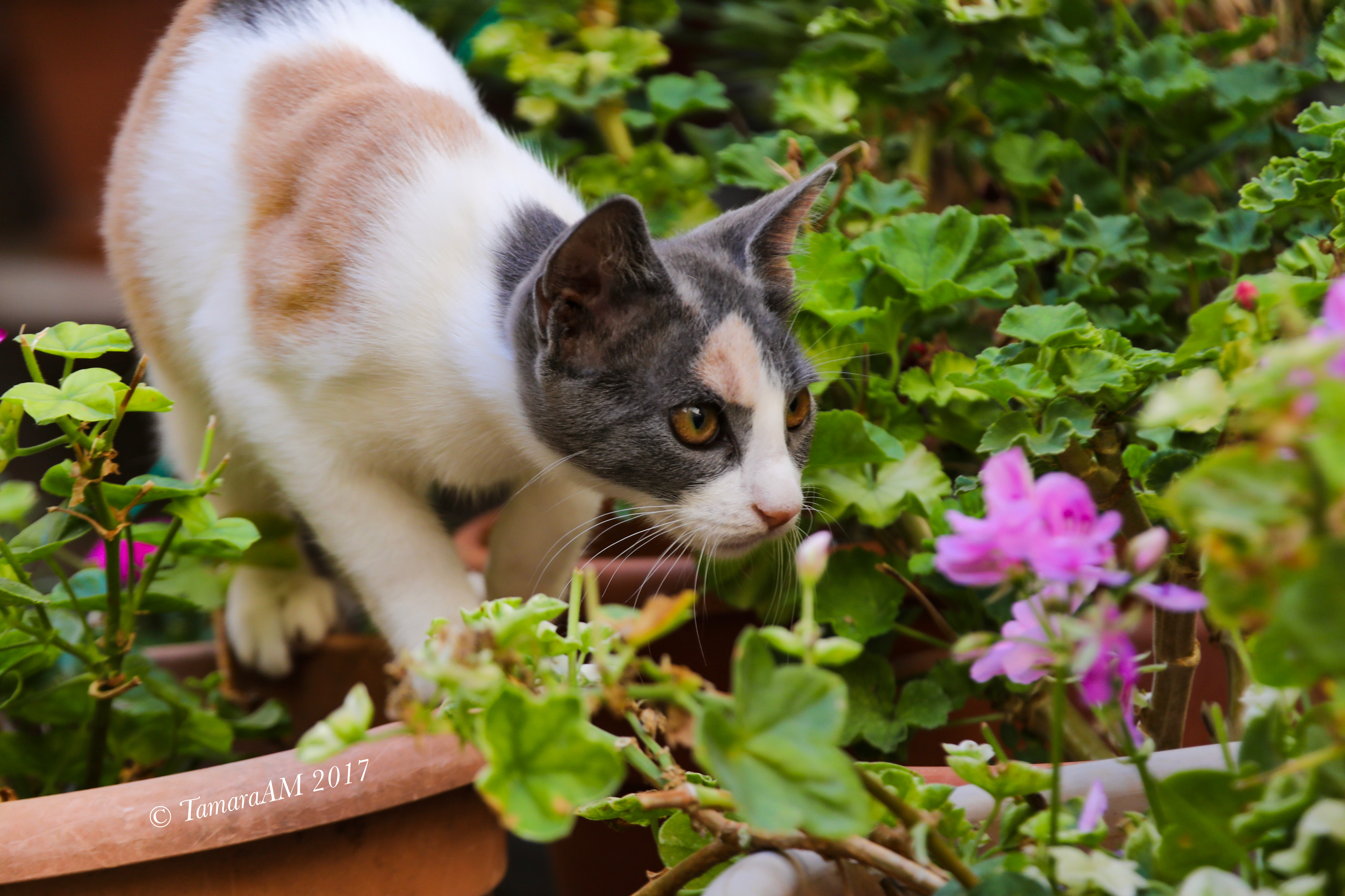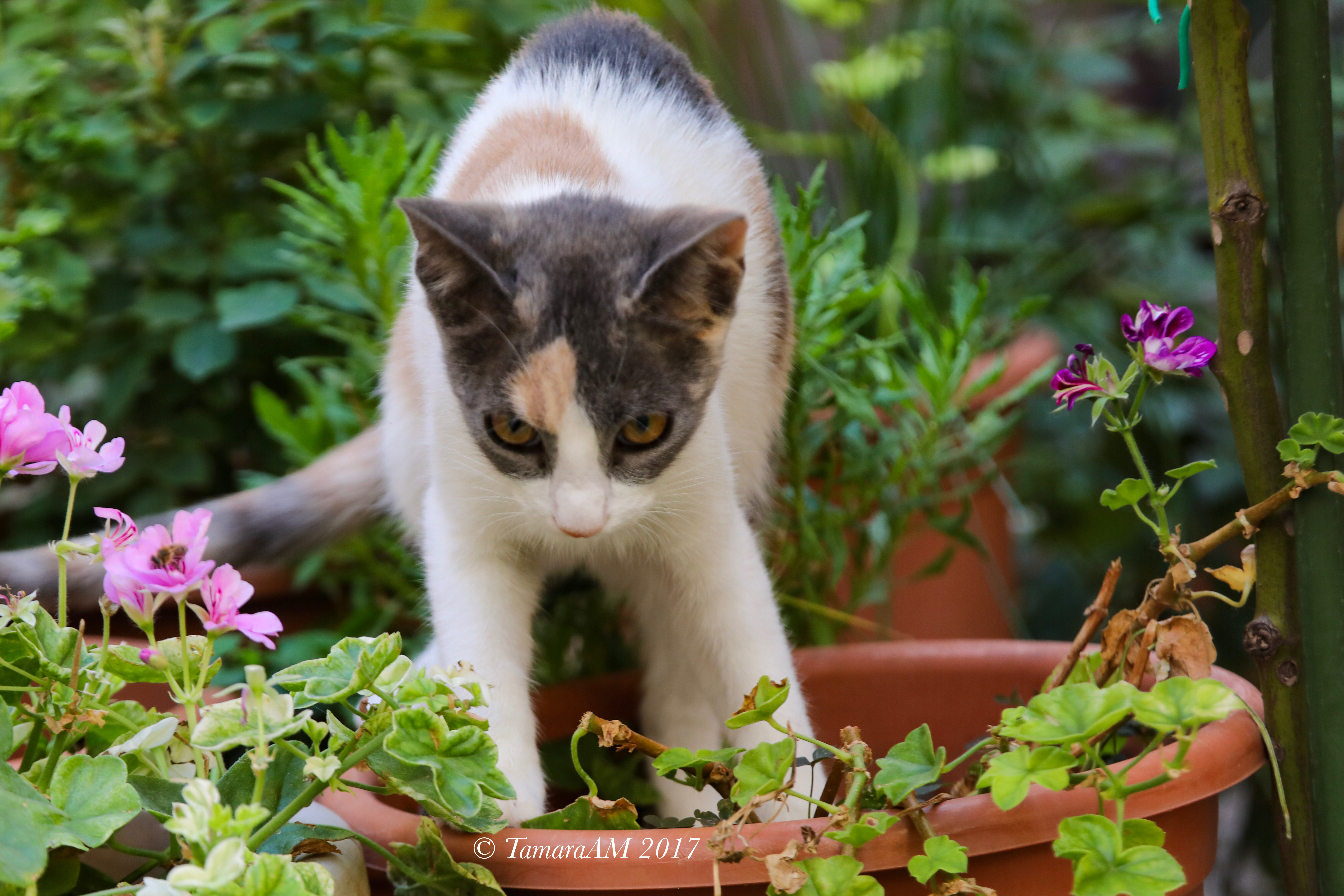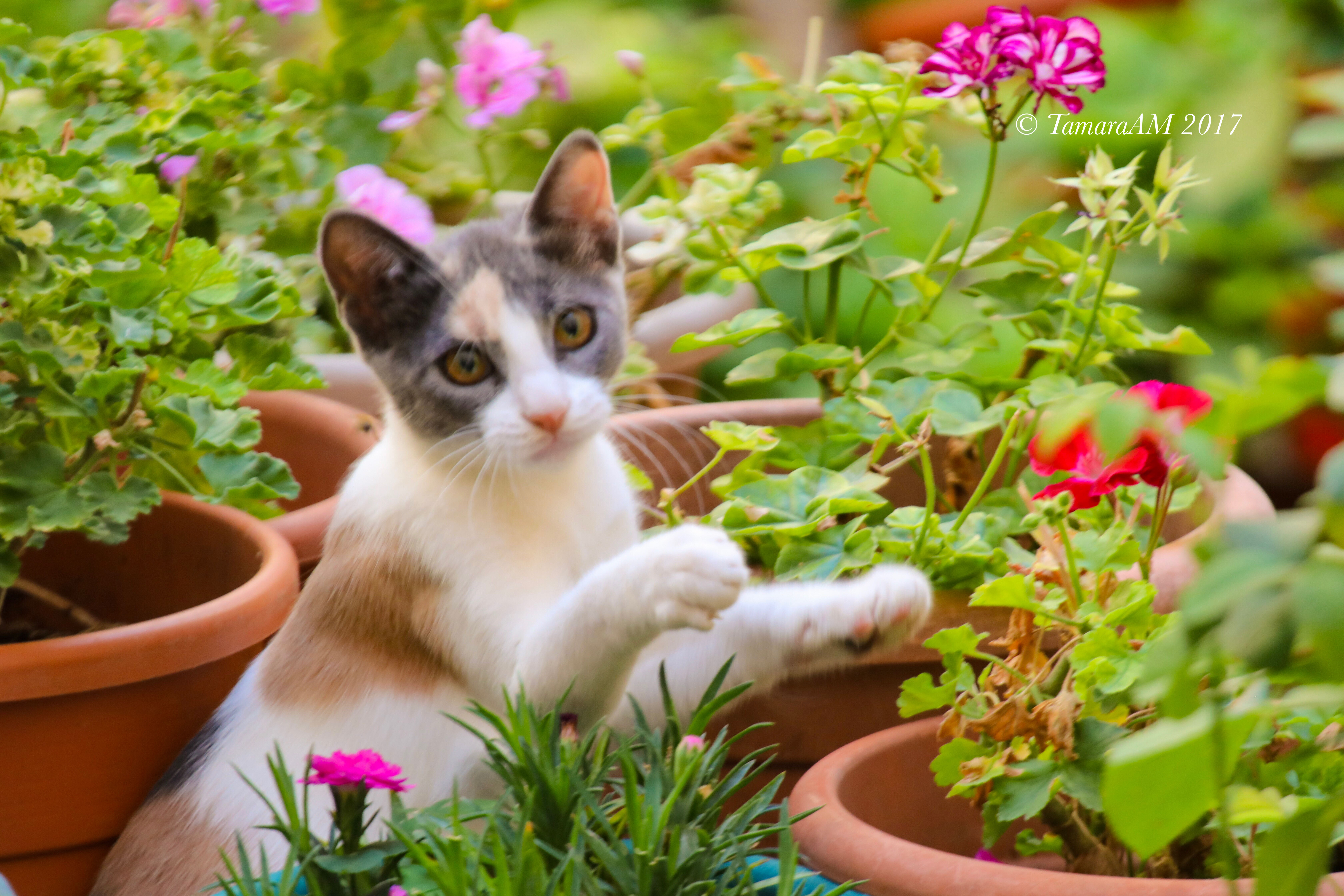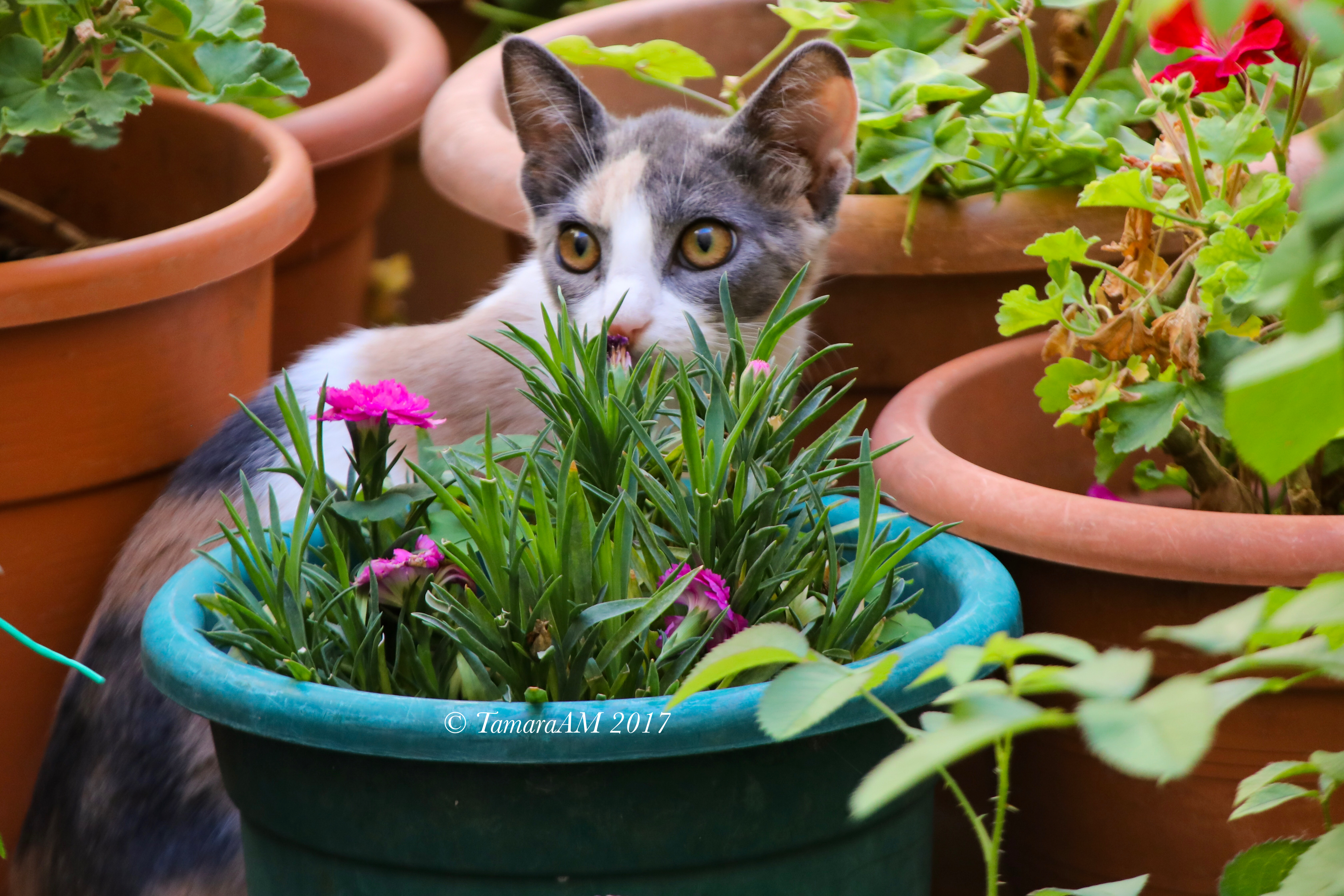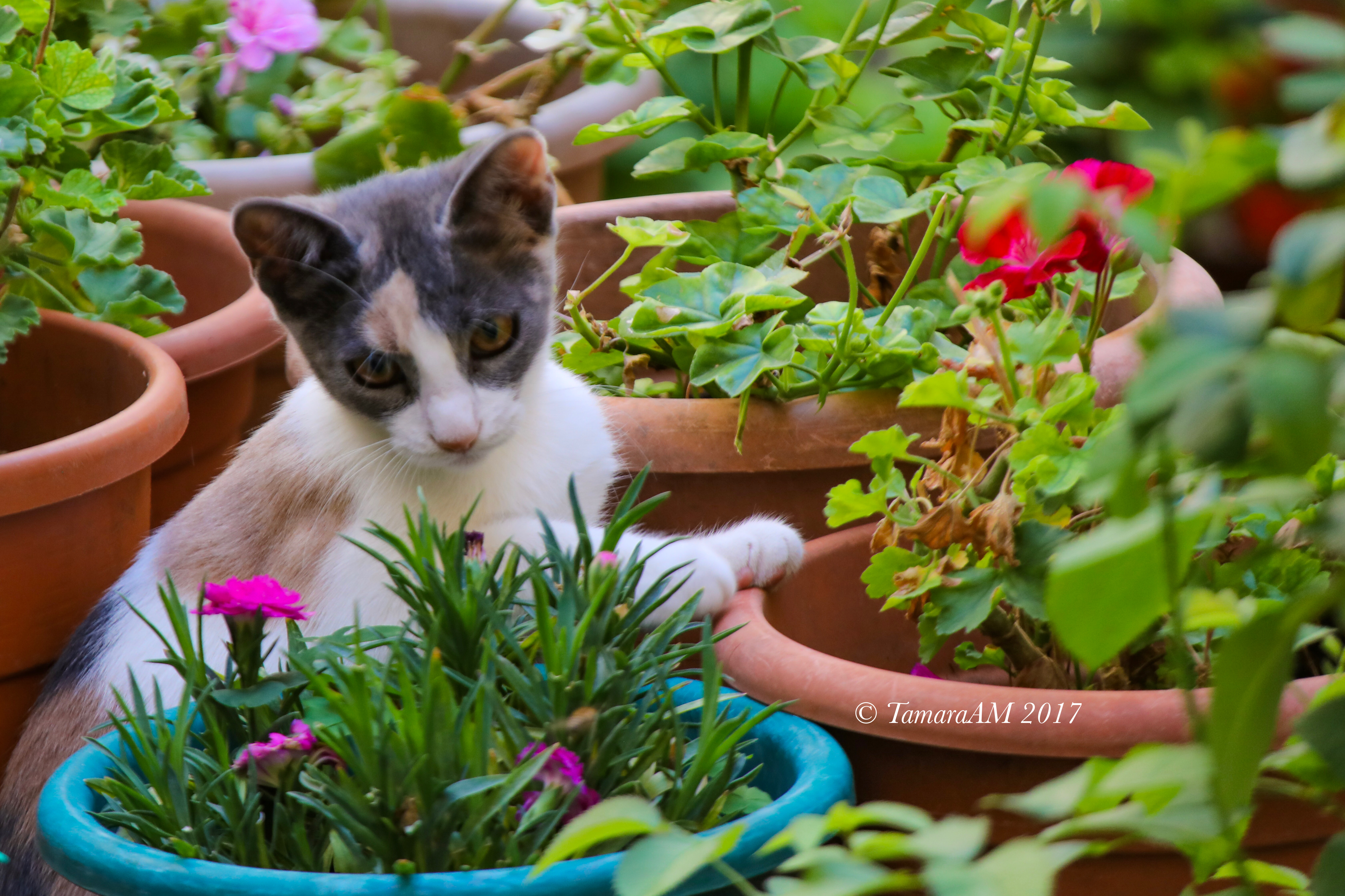 “Lalala, look at me, I’m a beautiful kitten hanging about all these potted plants. I bet you wish you could pet me, don’t you?”
