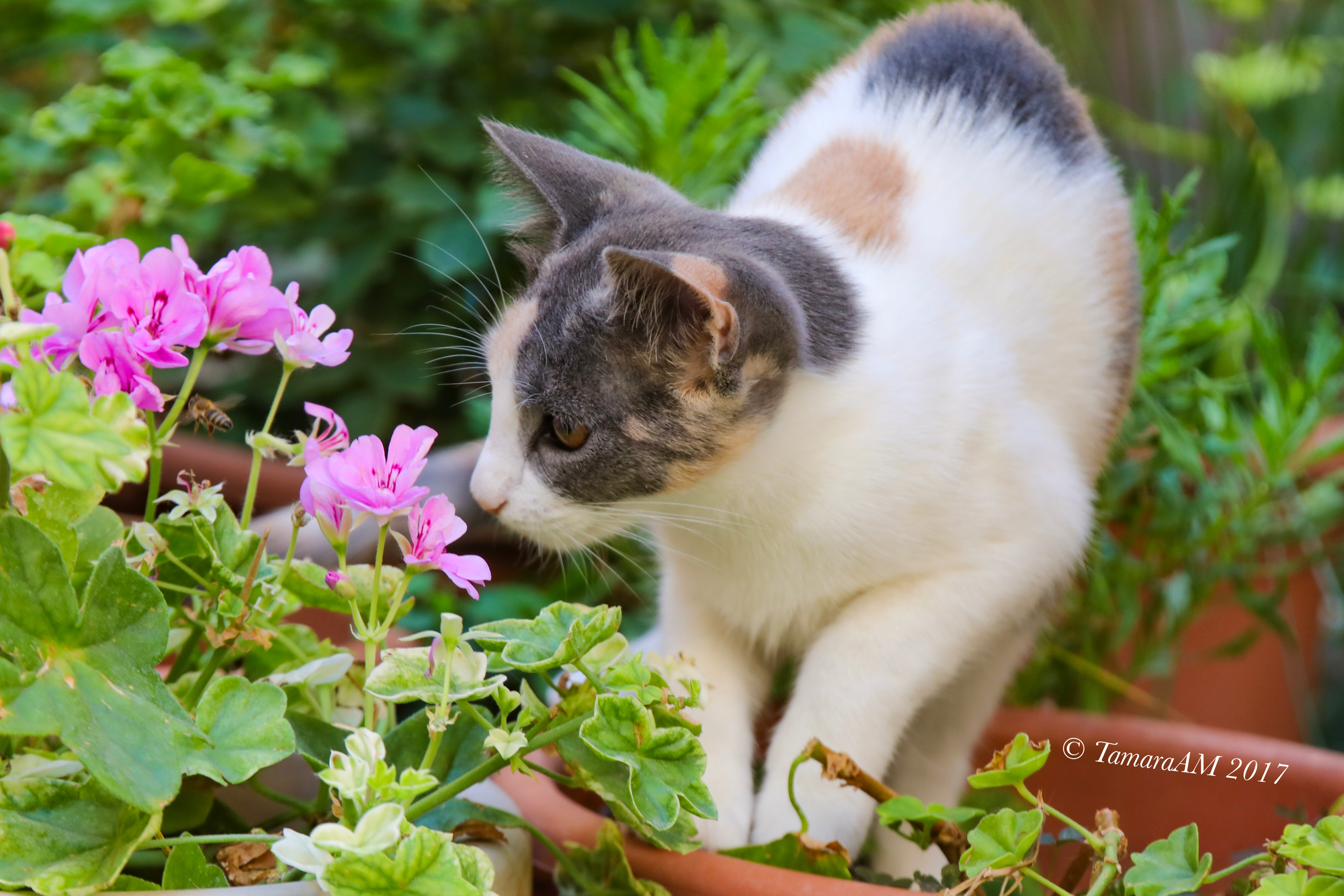 I don’t care if you’re not a big “cat fan,” you still need to see this post! If you love animals or flowers or bees or relatively decent photography, or are just a decent human being, then this is the post for you. 😻🐝🌸