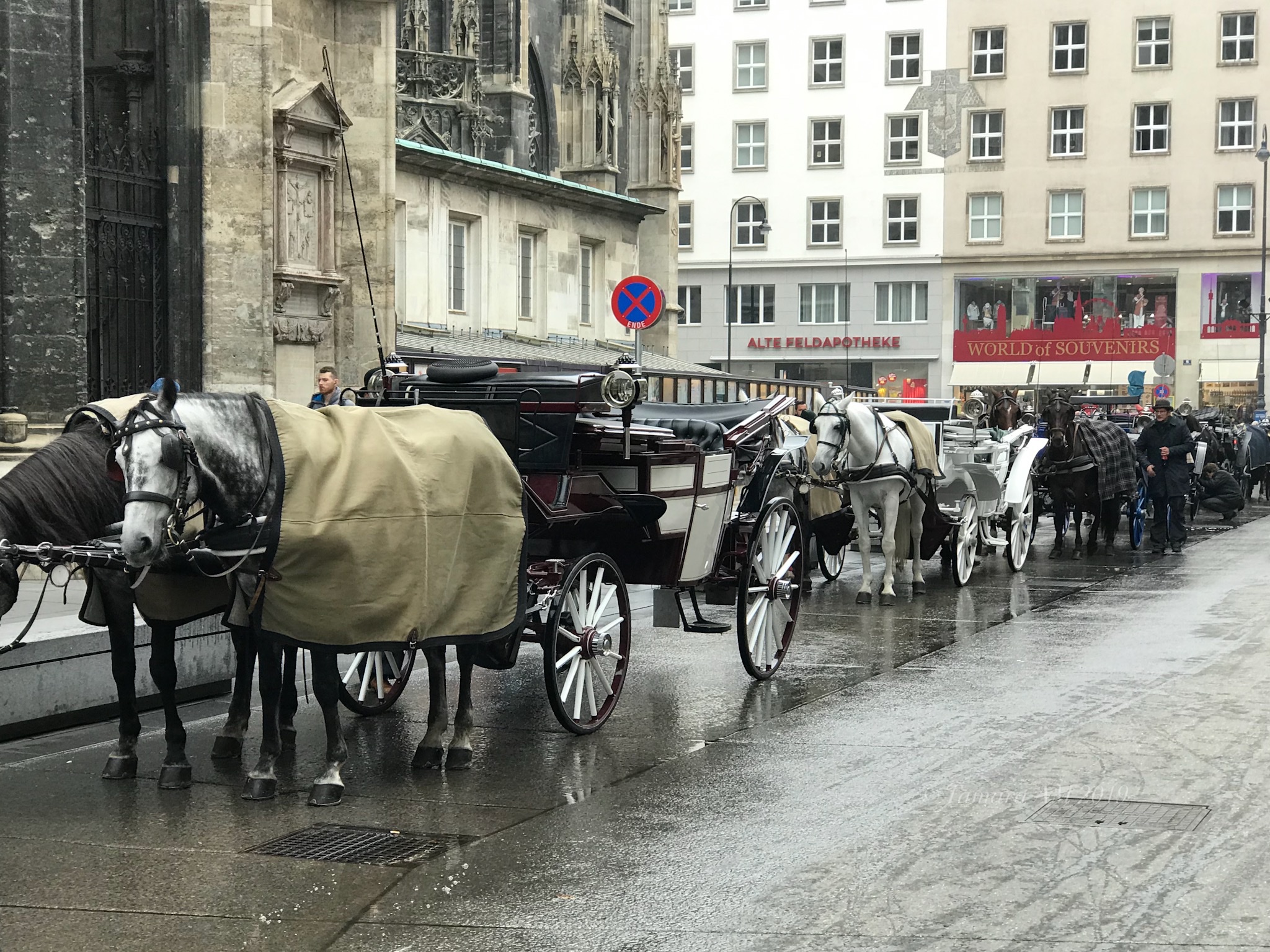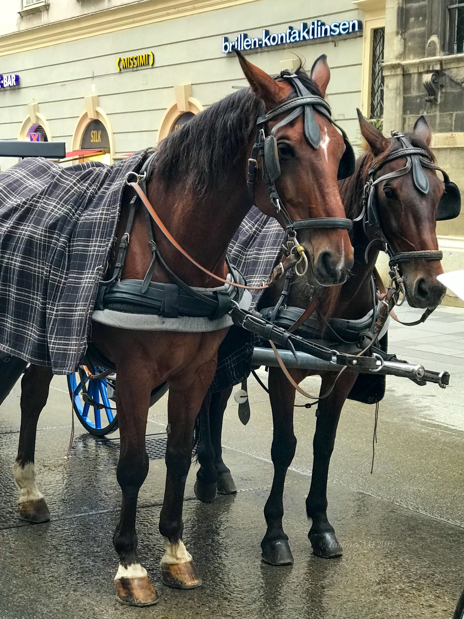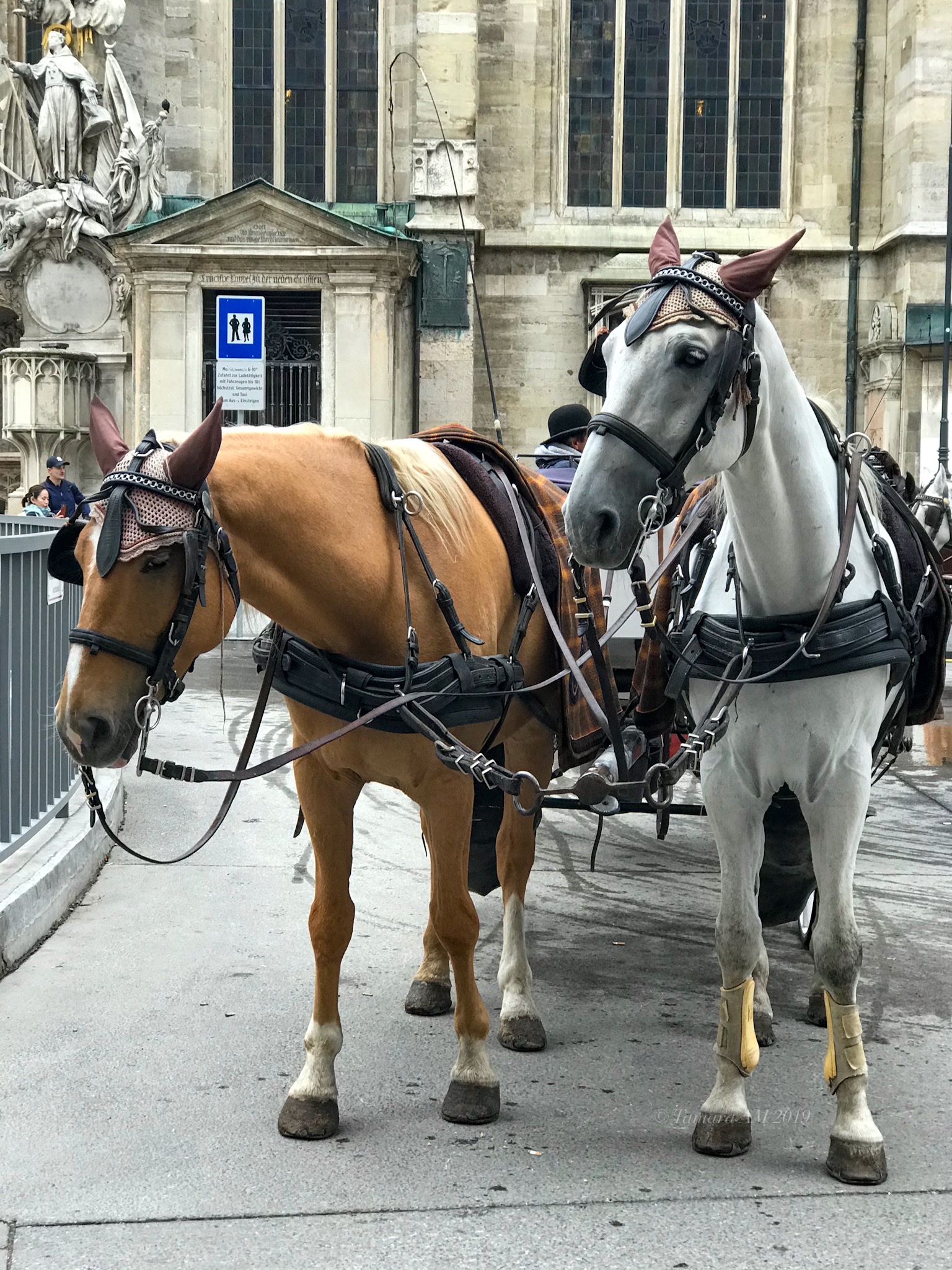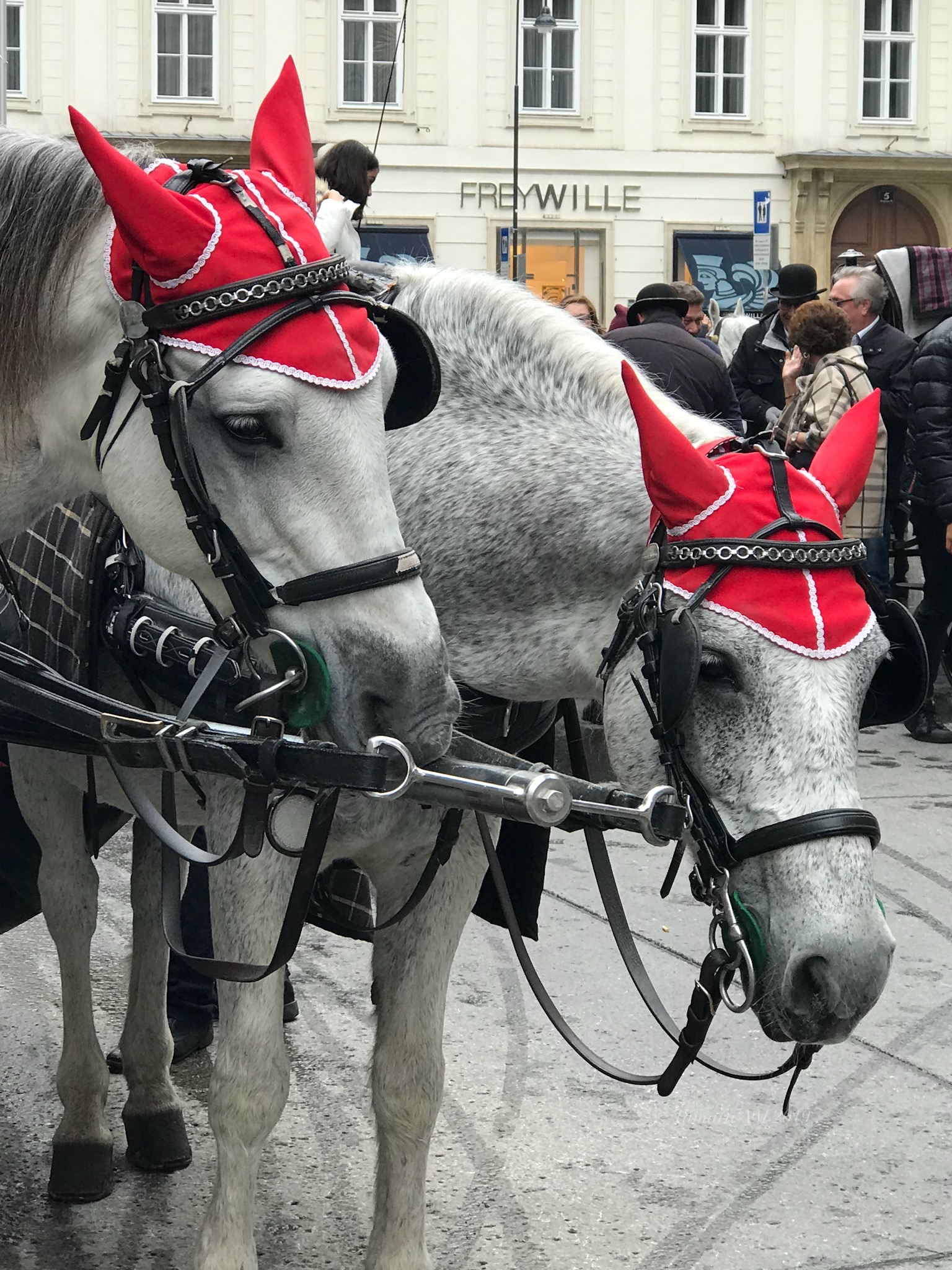 There were lots of beautiful horses in Vienna, conveying tourists around the historic city center in lovely fiacres. (Google it!) Check out the adorable head gear!