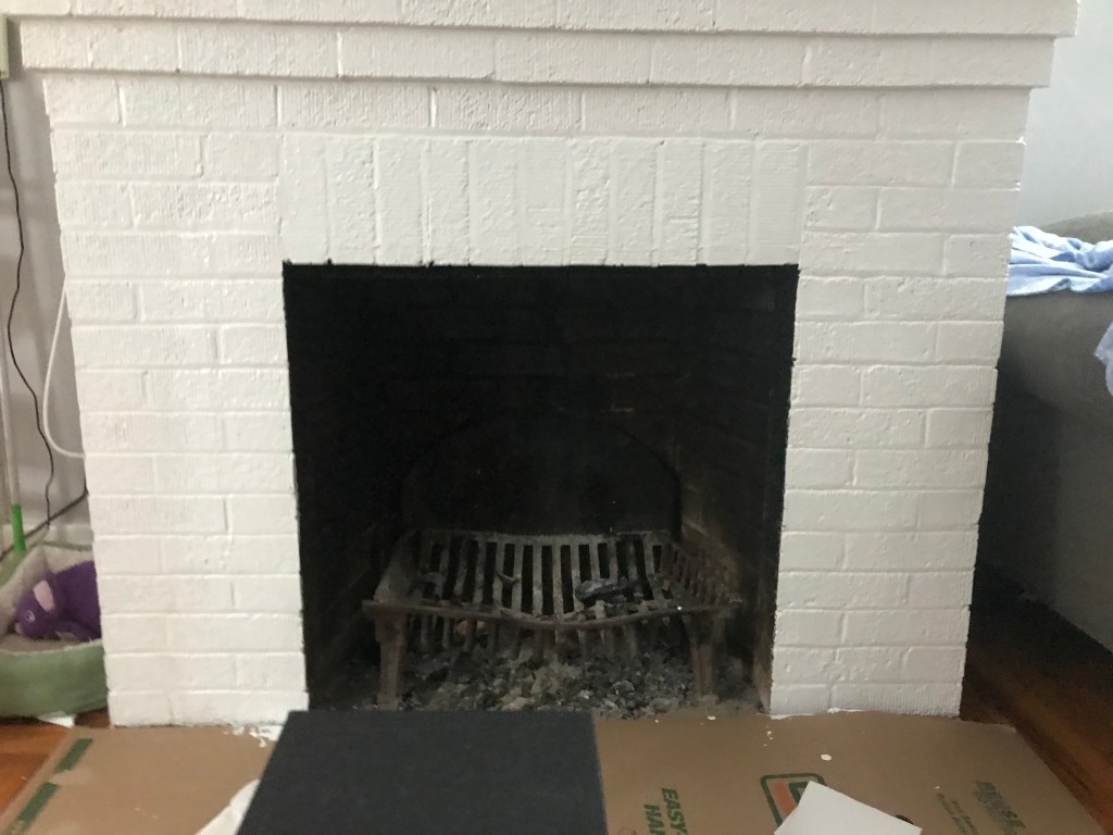 The home inspector recommended several actions before burning my first fire: cleaning, fixing the damper, replacing the spark screen, fixing the mortar issues related to the brick. I began calling chimney sweeps and got a steady message of “we’re booked through the new year right now.” I called the vendor (Casey’s Chimney Service) who had serviced this fireplace before, as evidenced by the fireplace-how-to booklet left behind by the seller for my use. They, too, were booked into the new year. (Who knew that you needed to buy a house with a fireplace earlier than late fall to be able to get an appointment with a chimney sweep? One of many lessons learned in this house buying experience, lol.) But in building a connection with the woman answering my call, I was able to secure an early morning appointment in early December. It didn’t hurt that I was always at home, thanks to the COVID-based work-from-home mandate in effect for me since March 2020.