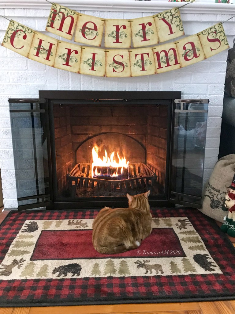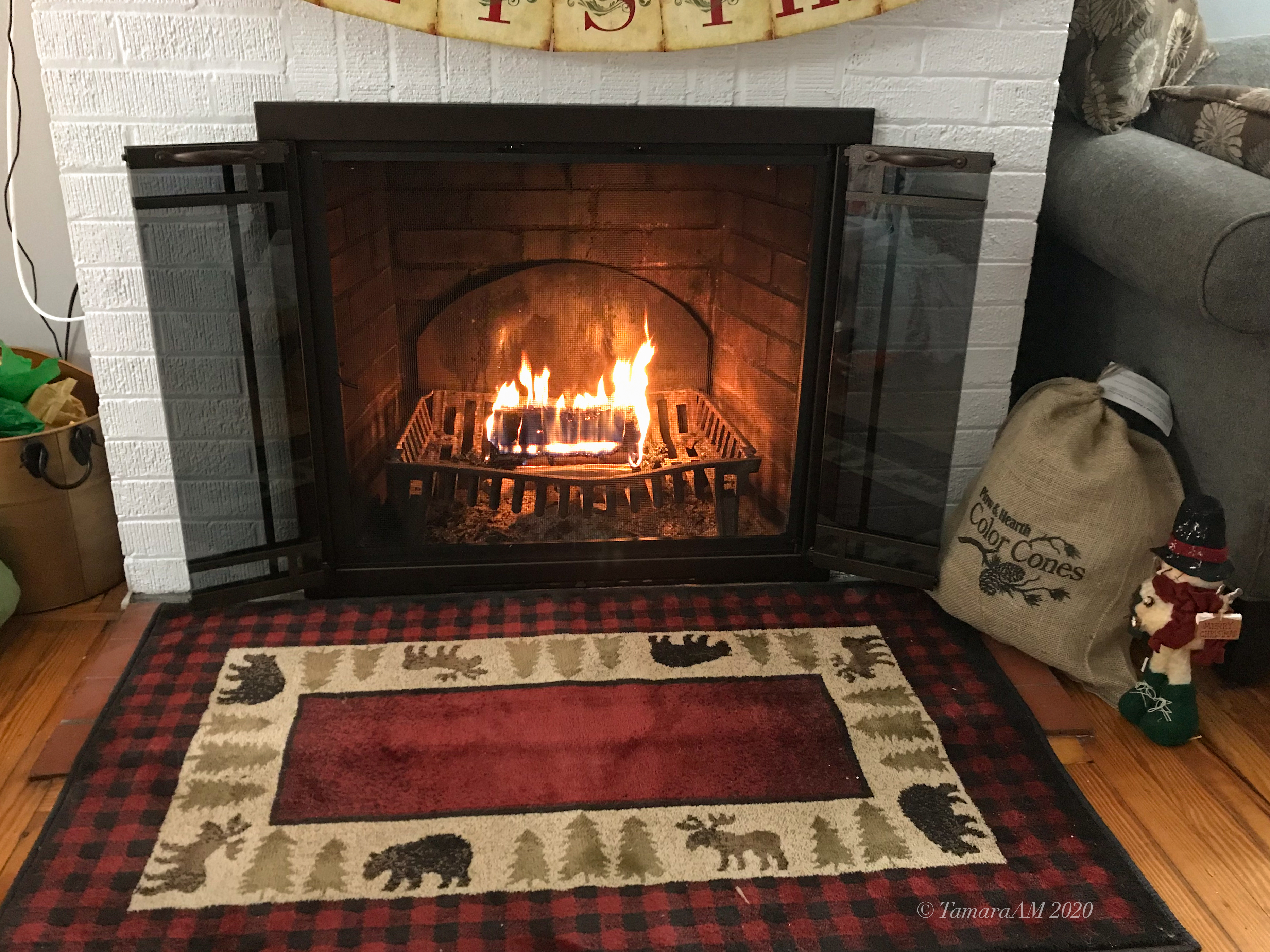 An historic photo of the first fire I burned in the fireplace. Those Duraflame logs work so nicely!