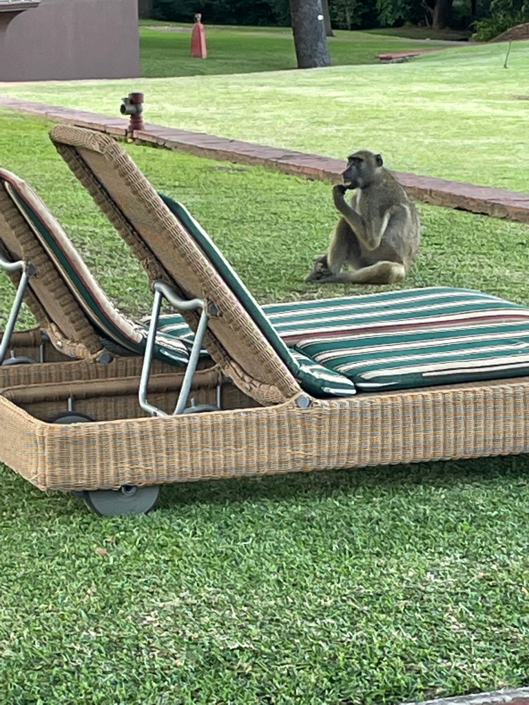 It was a wonderful evening. My only wish was that we could have met her big, beautiful German Shepherd. He bounded over to meet us when we arrived at the gate but was quickly subdued and taken to a distant corner and made to ‘sit’ and ‘stay’. I believe his primary role is to scare off baboons and elephants from the garden. But he clearly wanted to greet the guests.