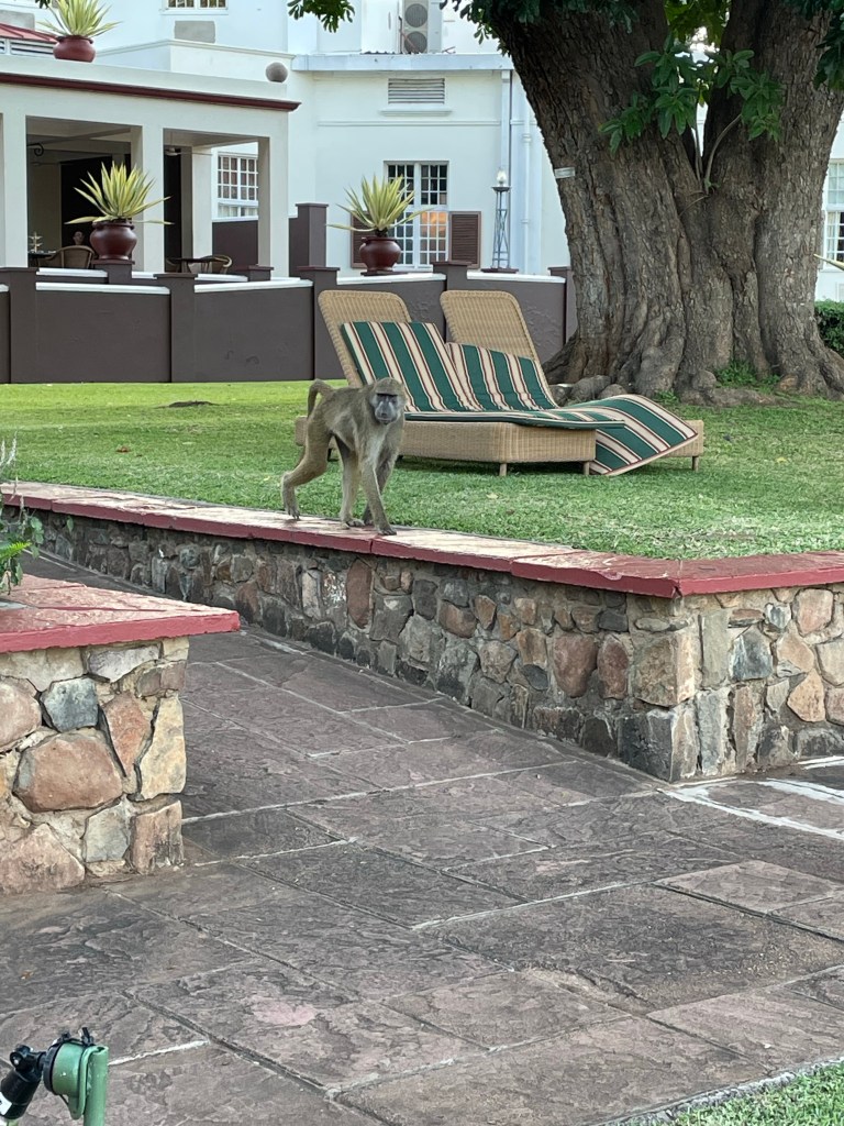 One highlight was the local wildlife, including baboons and a group of five warthogs, all found on the grounds of the posh, colonial-era Victoria Falls Hotel.