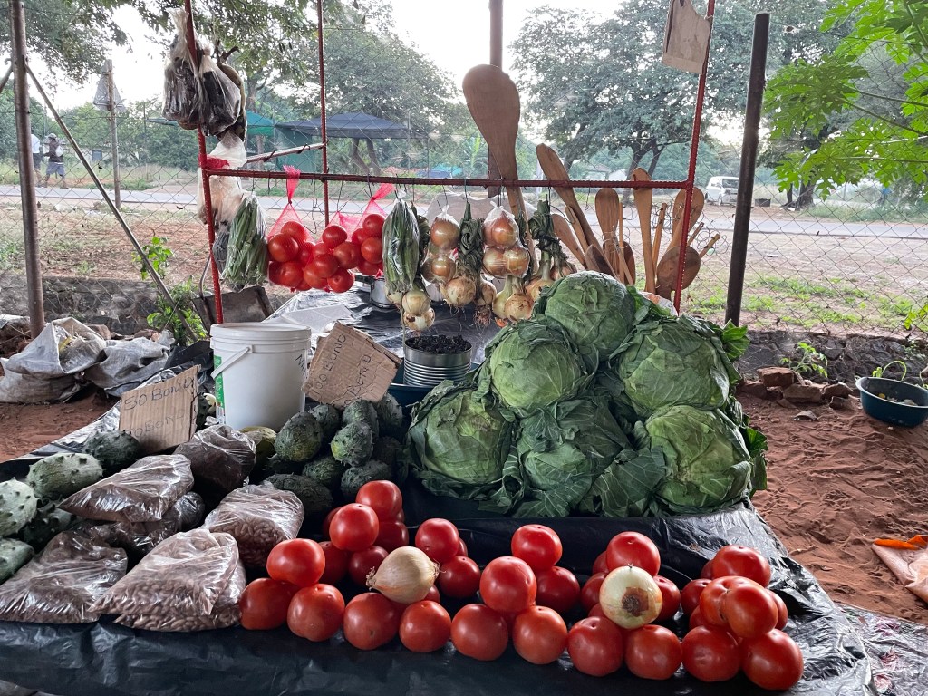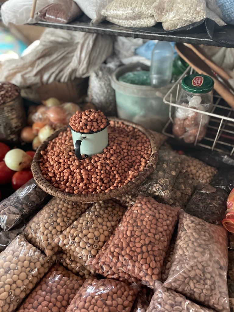 At Flatter’s house, we saw her garden which included mangoes, avocados, bananas, kale, and much more. Then she showed us how they grind maize, a staple in the local diet. Finally, she set out a wonderful meal which included traditional local cuisine with side dishes including pumpkin leaves with peanut butter, tomato onion relish, fried caterpillars (no, I didn’t eat them), tiny fried sardines, kale, polenta, etc. Chicken stew, beef stew, rice, and salad were also available.
