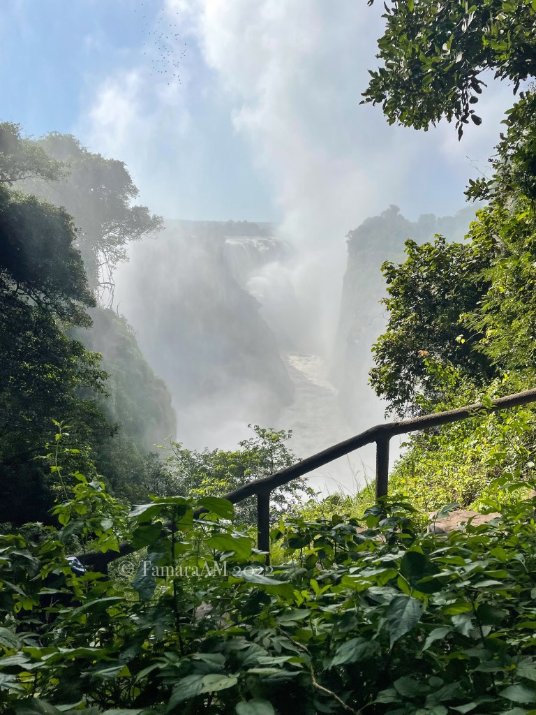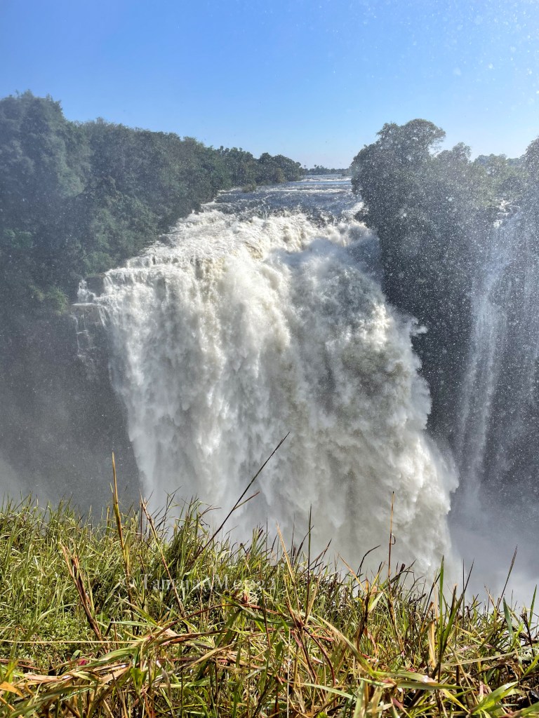 It is currently the high season (the high tide, if you will, of the Zambezi river, the fourth longest in Africa), thus the mist is at its fullest. Our guide, Smart, told us to return in low season (September through November) for a less mist-y experience.