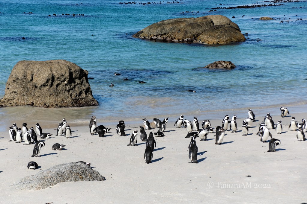 In a tree at KirstenboschEgyptian geese at Kirstenbosch; the one bird name I did remember, you’re welcome!What do you call a group of African Penguins on Boulder Beach? (Oh, I remembered their name too!)A bird with a big beak from Kruger National ParkMy personal favorite, for its colorful appearance and for its cooperation in sitting perfectly still while I took the photos; seen at KrugerAnd one more, this time with a leaf in its mouthA loner penguin on Boulder BeachNot a great capture but I love the ruffled look to its feathers; who ruffled your feathers, Mr. Bird?Major side eye from this majestic specimen from Karongwe PortfolioOne more view from the beach…