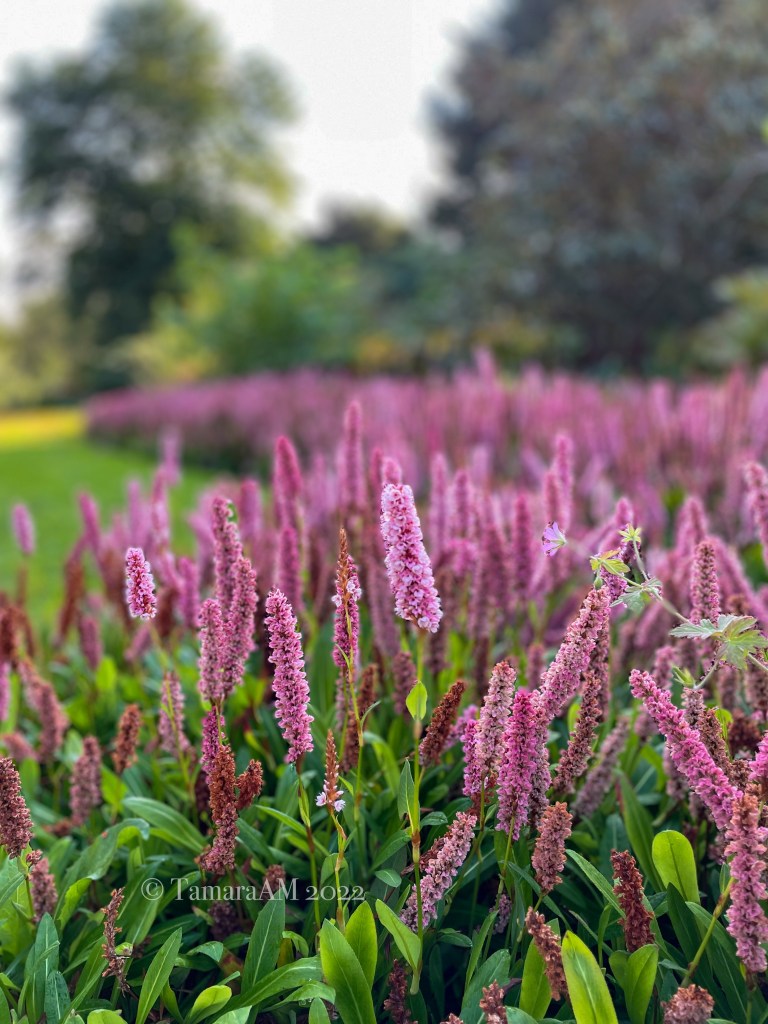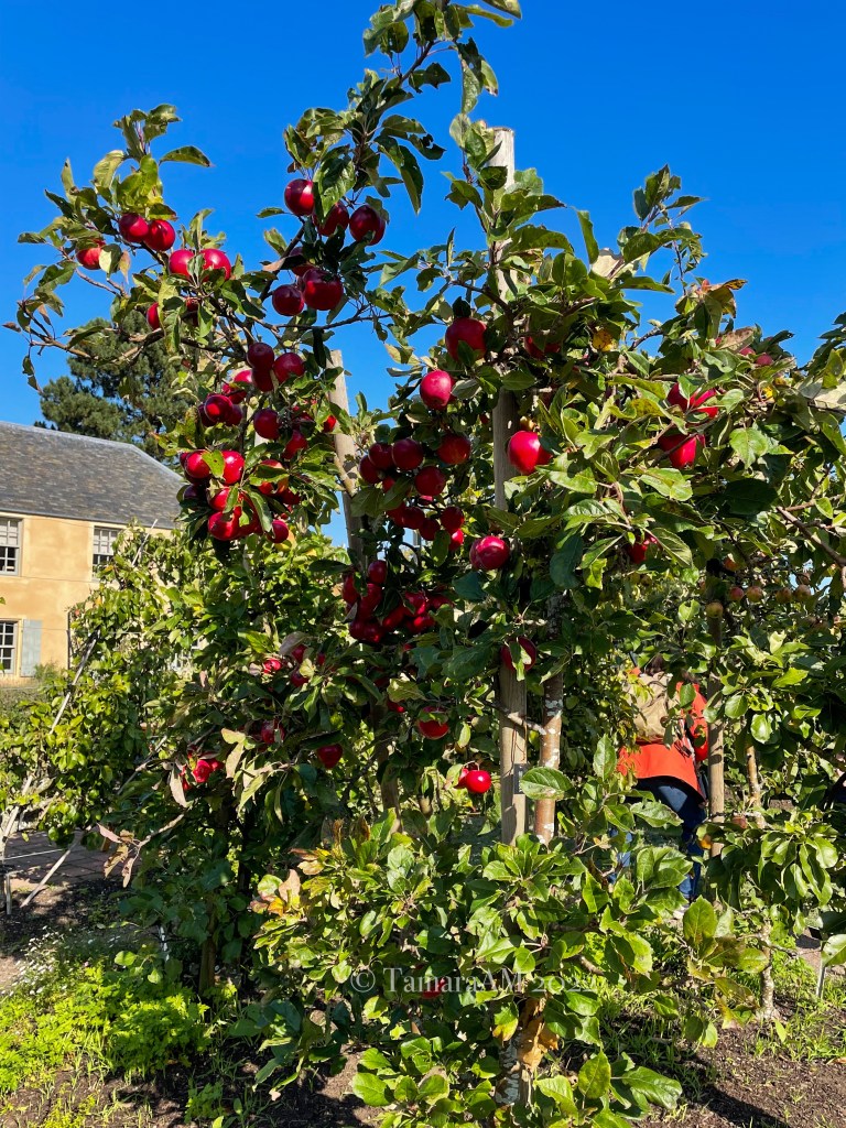 Loved the unique look of this tree; I regret not noting it’s name, lolLoved this very large hedgerowThe apples were aesthetically pleasing ; I can totally understand why they’d need to put up the sign (below)Portrait mode produces some great shots; love how much this pink flower just pops right off the pageBeautiful arched opening in the hedgerow Have never seen apple trees like this beforeThis little guy landed on my hand, explored a few seconds and then took offThe post would be incomplete without purple flowers Volume up for the sound of running water