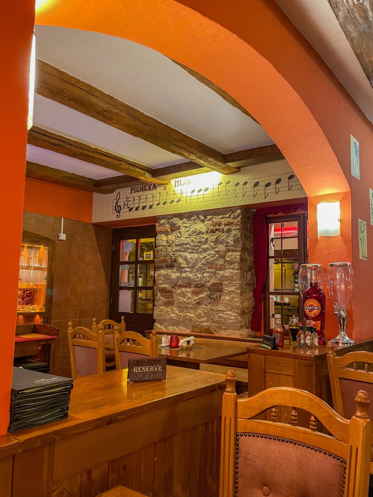 The restaurant was charming with a music-themed decor, stone walls, bright lights, and brightly painted orange walls. There were also clean bathrooms, (always important when you’re out and about all day), hurray!