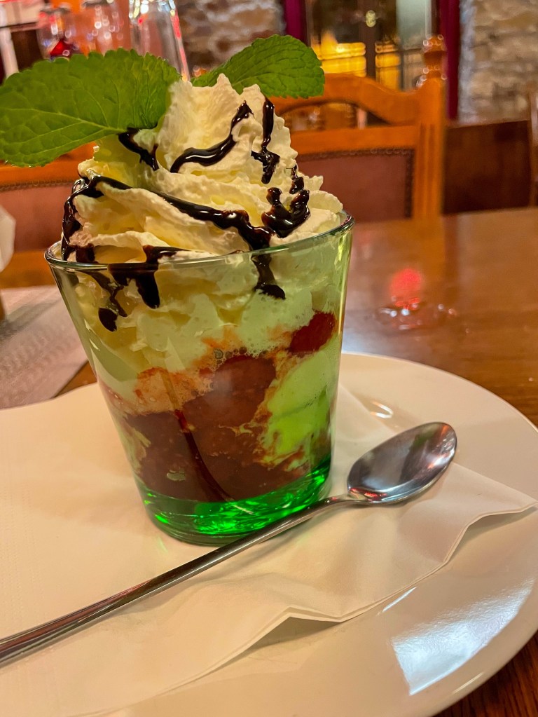I ate much of the bread bowl but got the rest wrapped up to take “home” so I could have dessert. I chose hot raspberries served with ice cream and whipped cream. I don’t usually eat much ice cream, but I’m on vacation and it was served with berries, so I had to! #noregrets