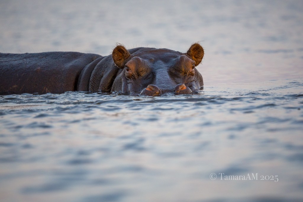 A brown hooded kingfisher perched on a branch.5 elephants lined up for a drink in the early morning light.Hippo straight ahead!A juvenile African jacana bird