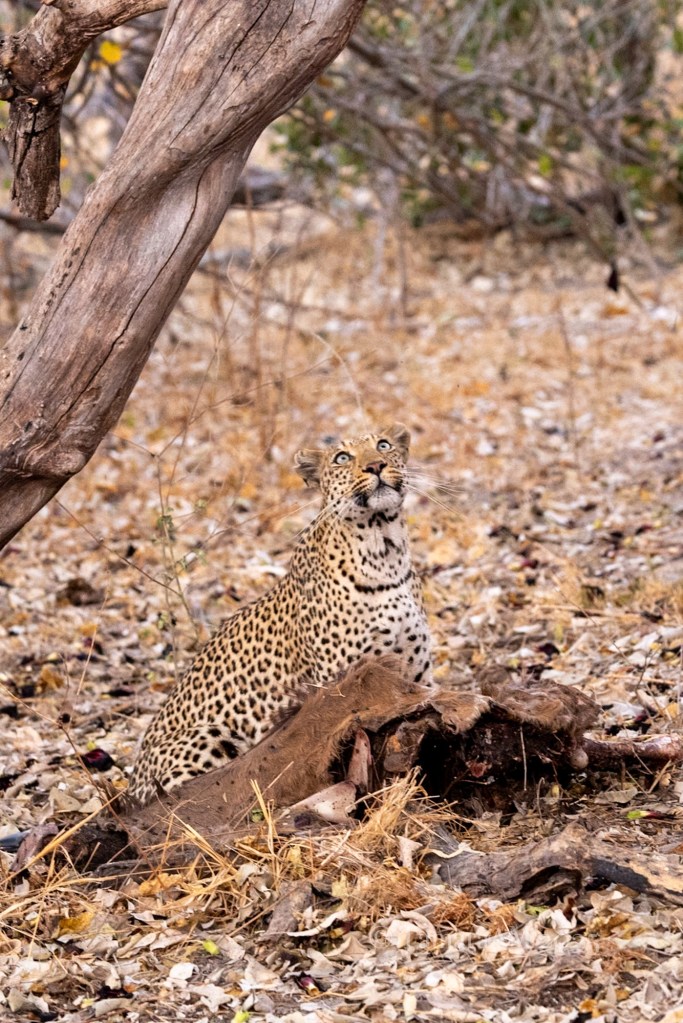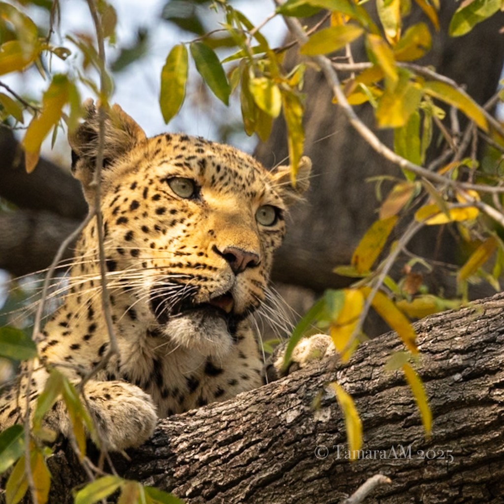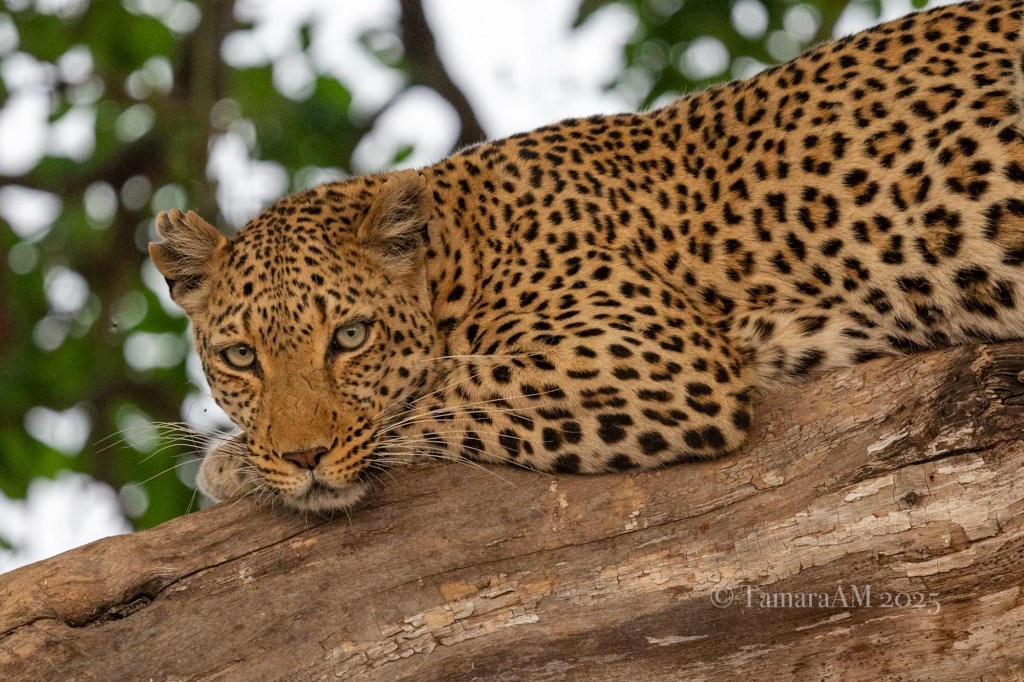 A baby hippo sleeping blissfully in the mud with its mama.An elephant silhouette in the setting sun in Chobe.Feels like the right photo for… “What are you looking at?”A beautiful lilac breasted roller eating a snake.A beautiful female leopard rest in a tree after a meal…… this formerly beautiful, unfortunate kudu.Love the light on the this leopard’s face!