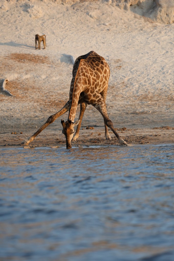 I’ve also included two pics of that same giraffe, rather awkwardly (all legs!) drinking from the river a few minutes later.